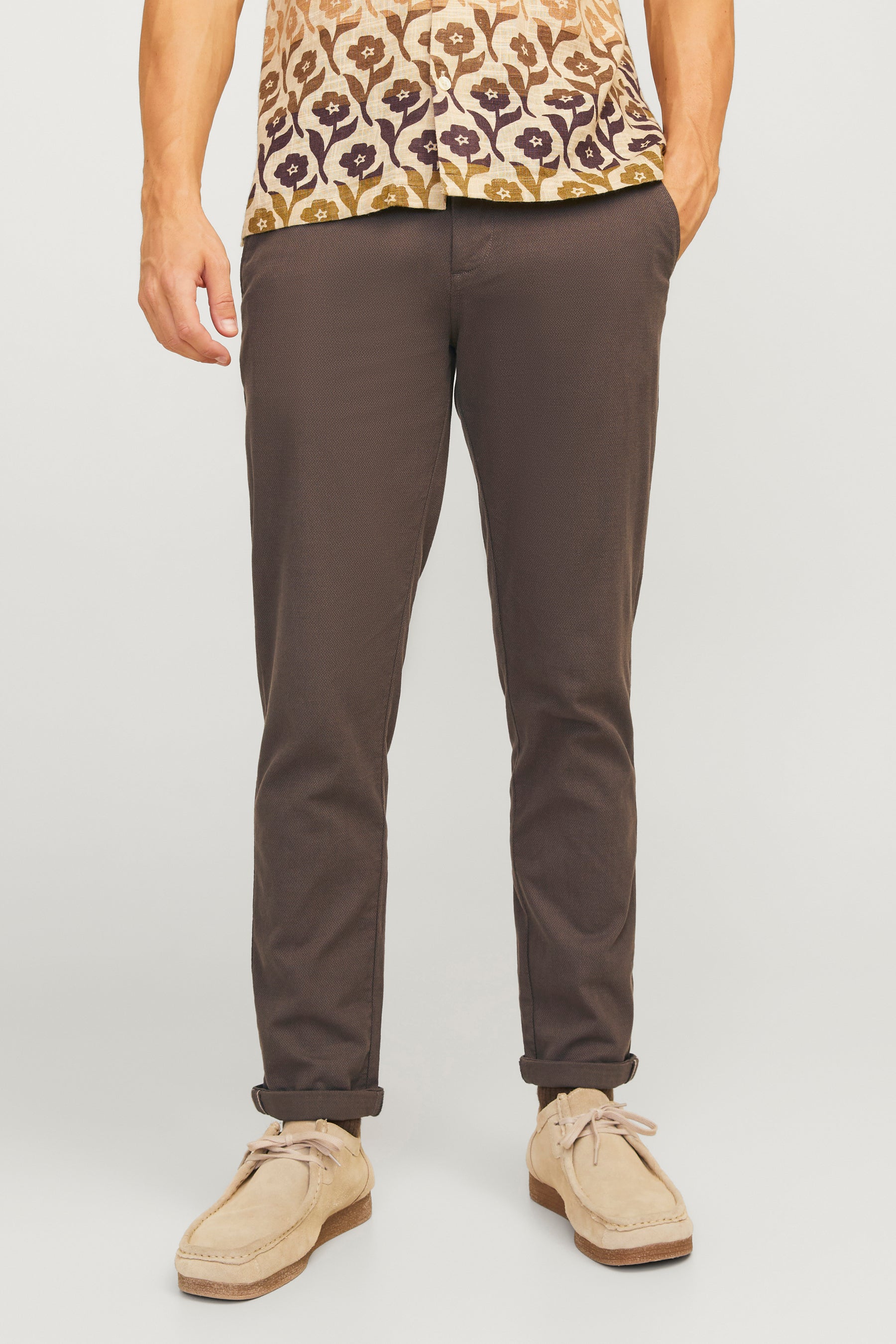 Description: Ce chino brun pour hommes a une belle coupe et offre un grand confort. Vous porterez ce pantalon élégant pour aller tous les jours au bureau ou pour des occasions plus formelles. Associez-le avec vos T-shirts ou vos chemises et vos pulls favoris pour un look plein de style.
