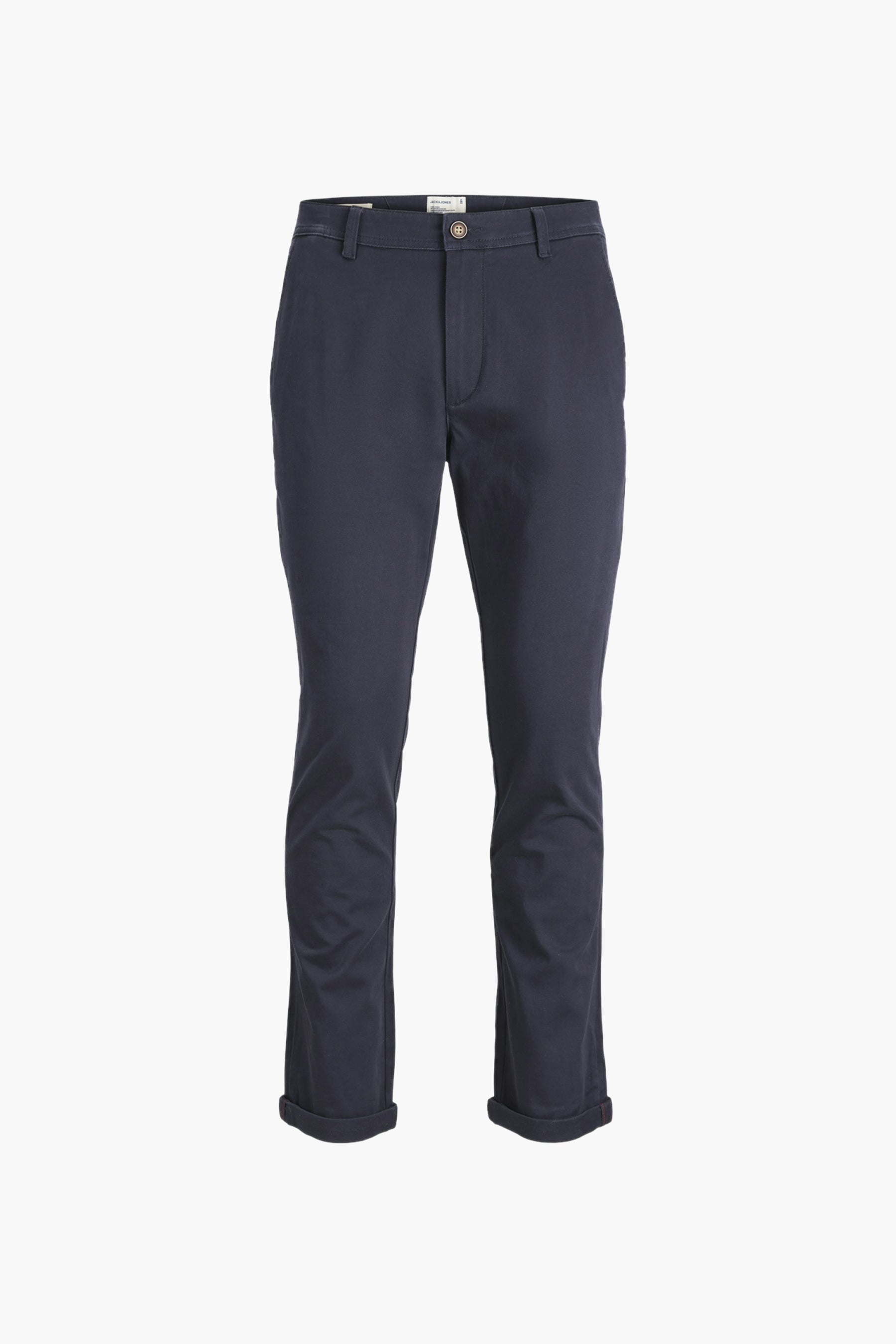 Beschrijving: Deze blauwe chino voor heren van JACK & JONES Jeans Intelligence heeft een mooie pasvorm en hoog draagcomfort. Je draagt deze elegante broek voor alledaags gebruik naar kantoor of formele gelegenheden. Te stijlen met jouw favoriete T-shirts hemden en pulls.