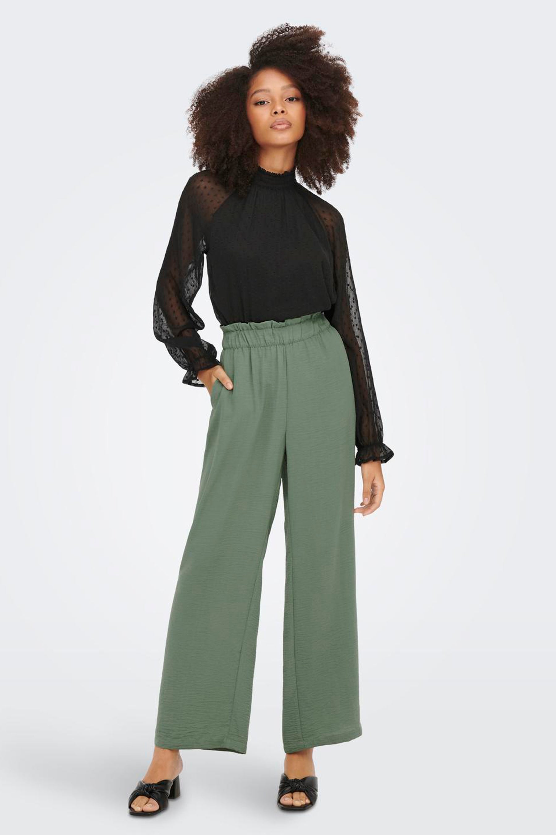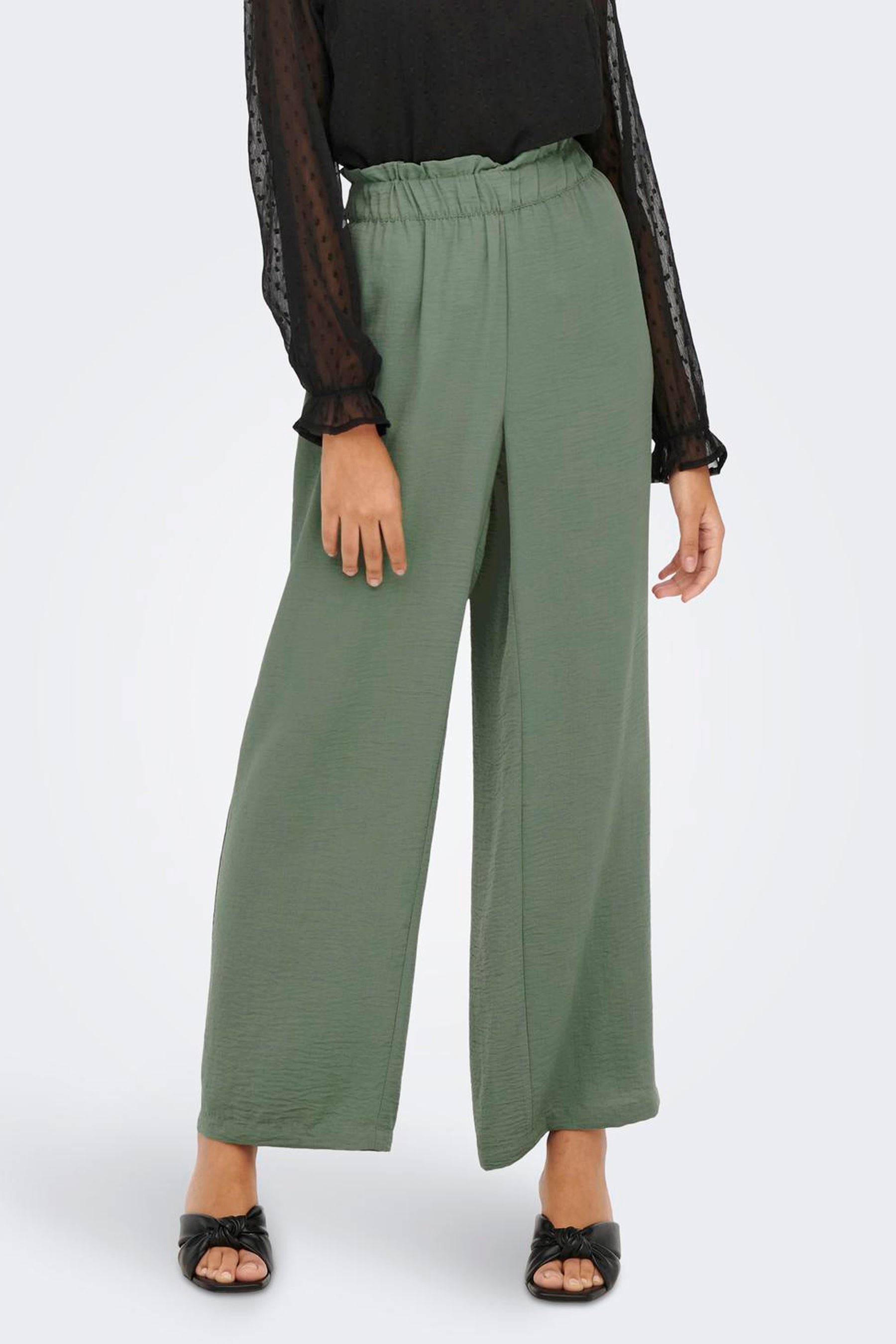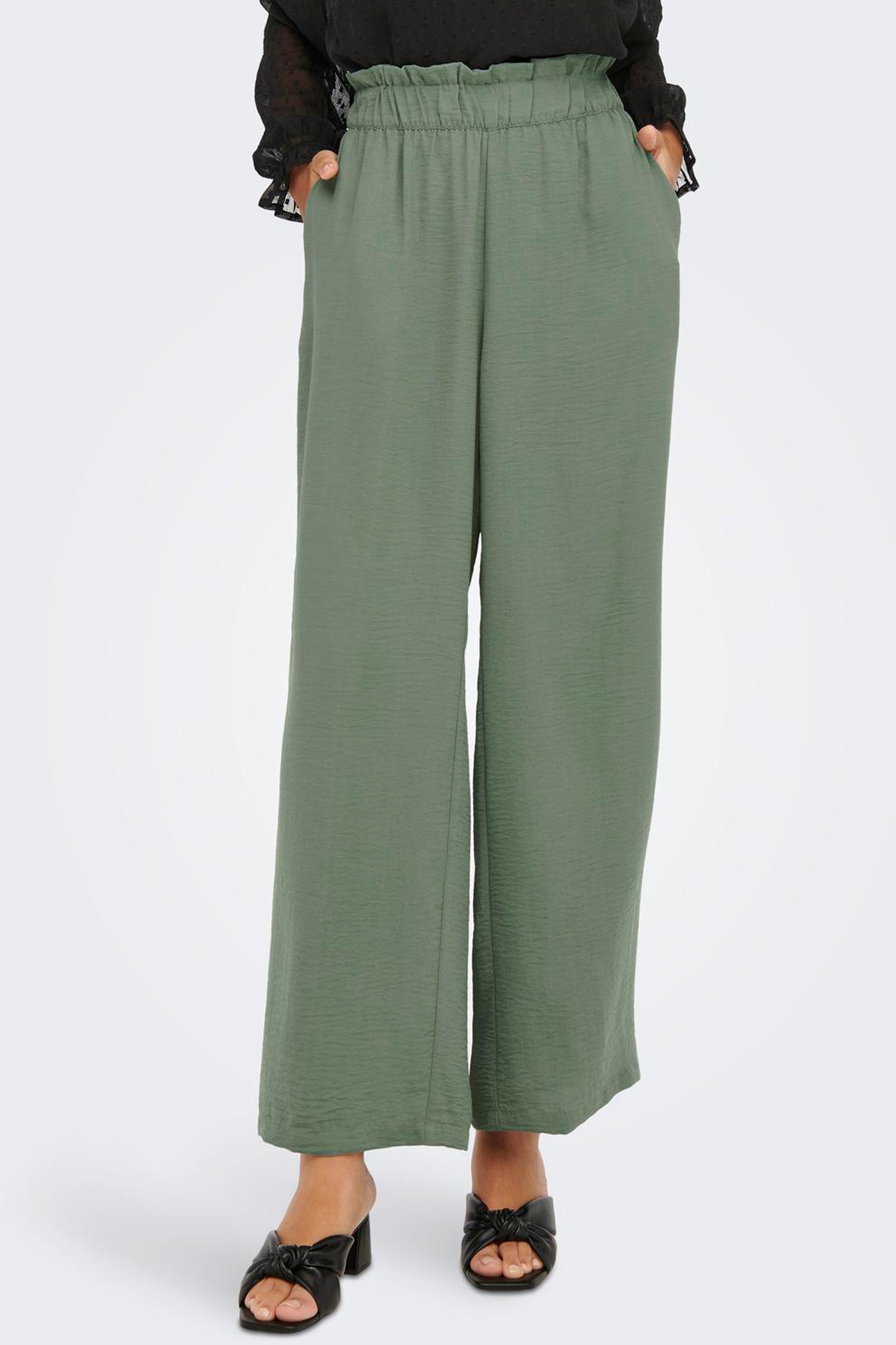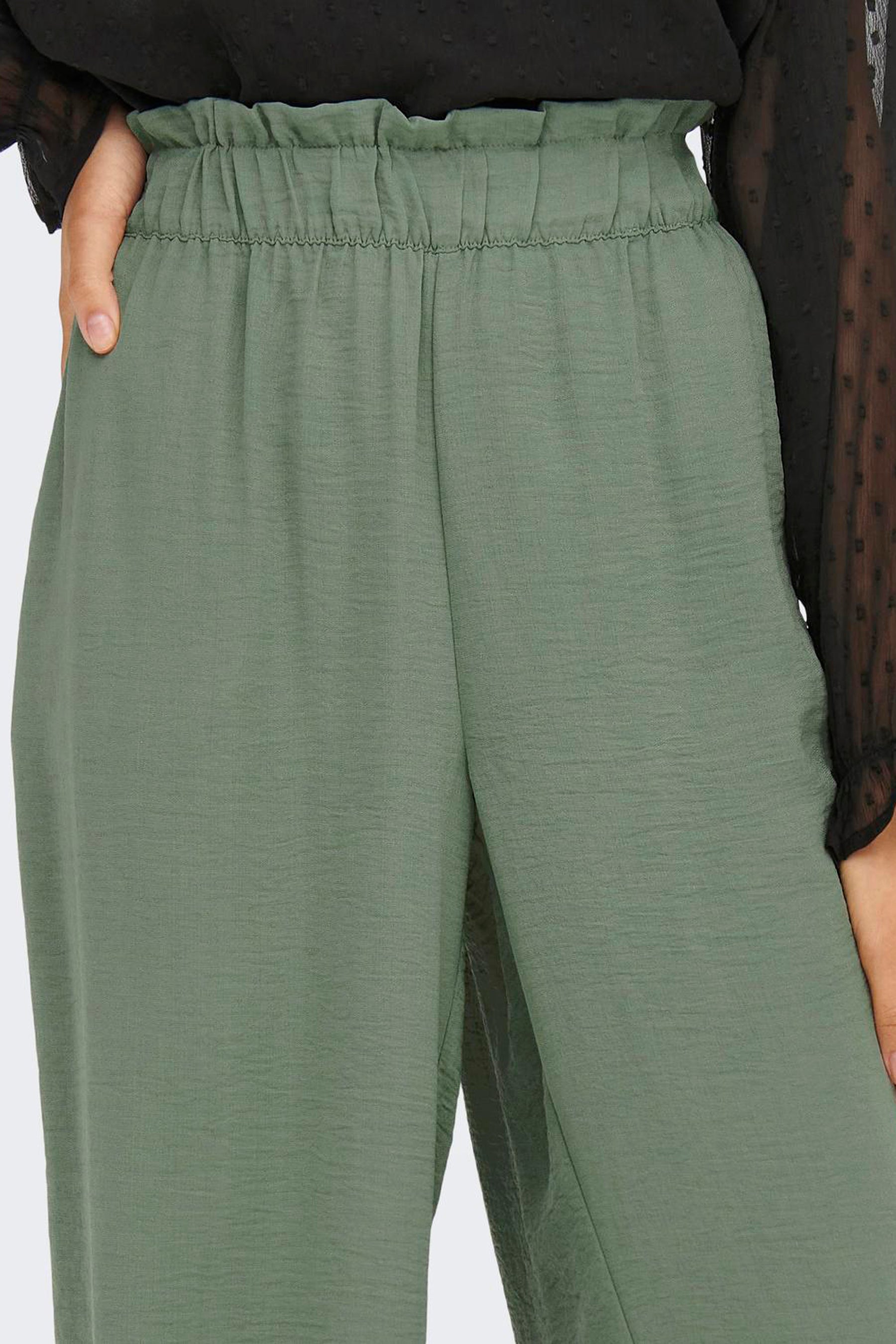 Extra details: Elastische tailleband, Paperbag tailleband, Brede tailleband