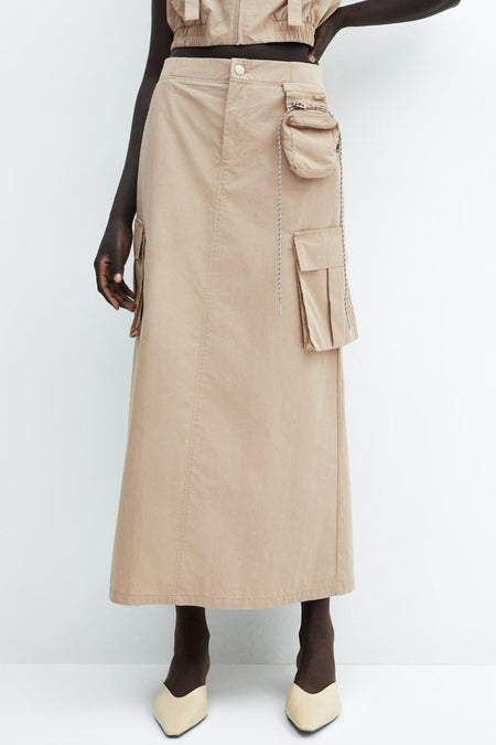 Beschrijving: Met deze lange rok ben je helemaal mee dit seizoen. Het eigentijdse kantje en de bruin kleur maken van deze stijlvolle rok een key item voor je garderobe.