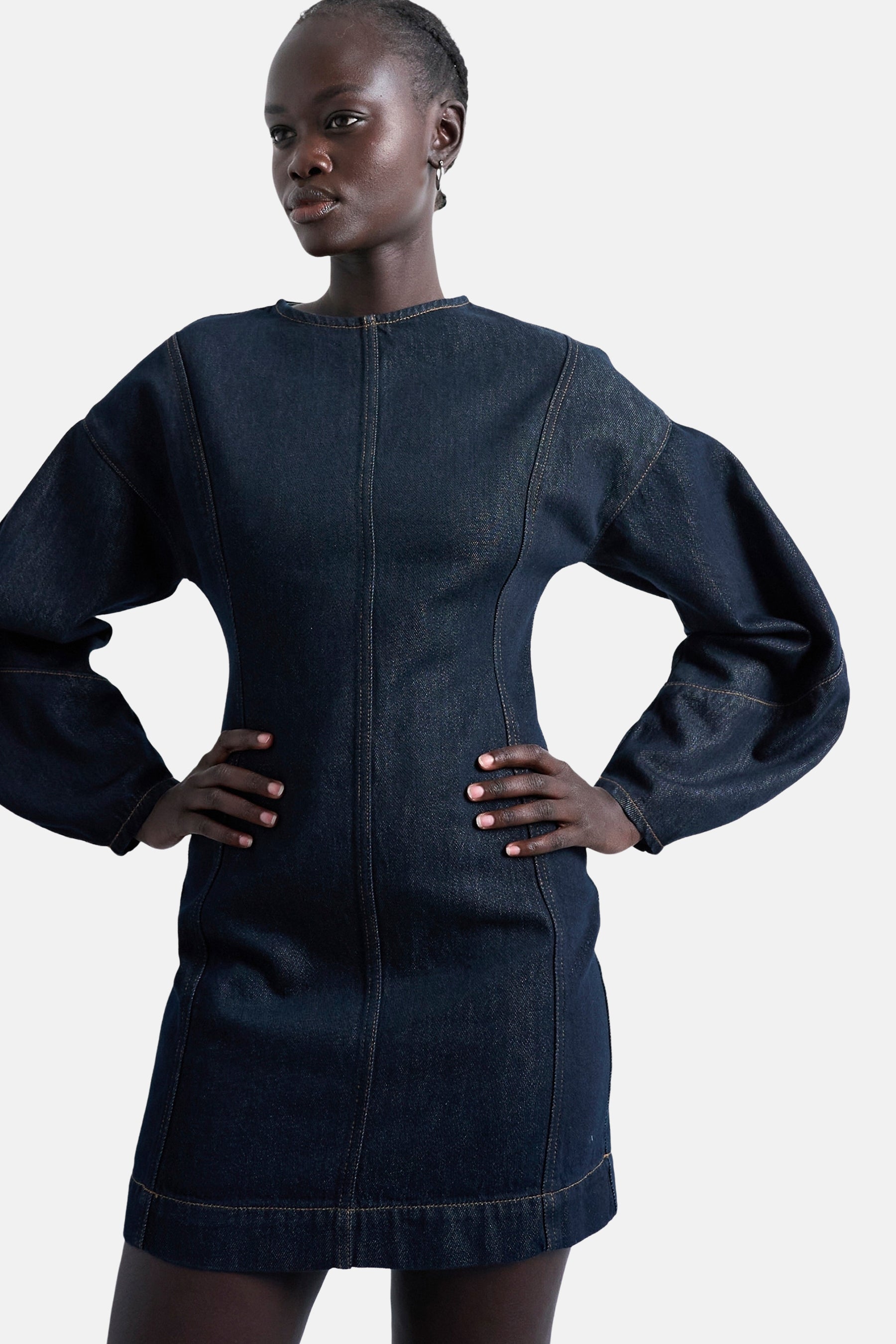 Kleedje met lange mouwen - Dark blue denim - TOPSHOP